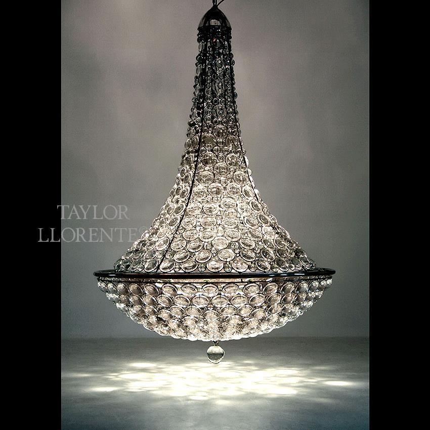 Hand made 'artisan' chandelier. Part of a high profile and couture collection of luminaries.