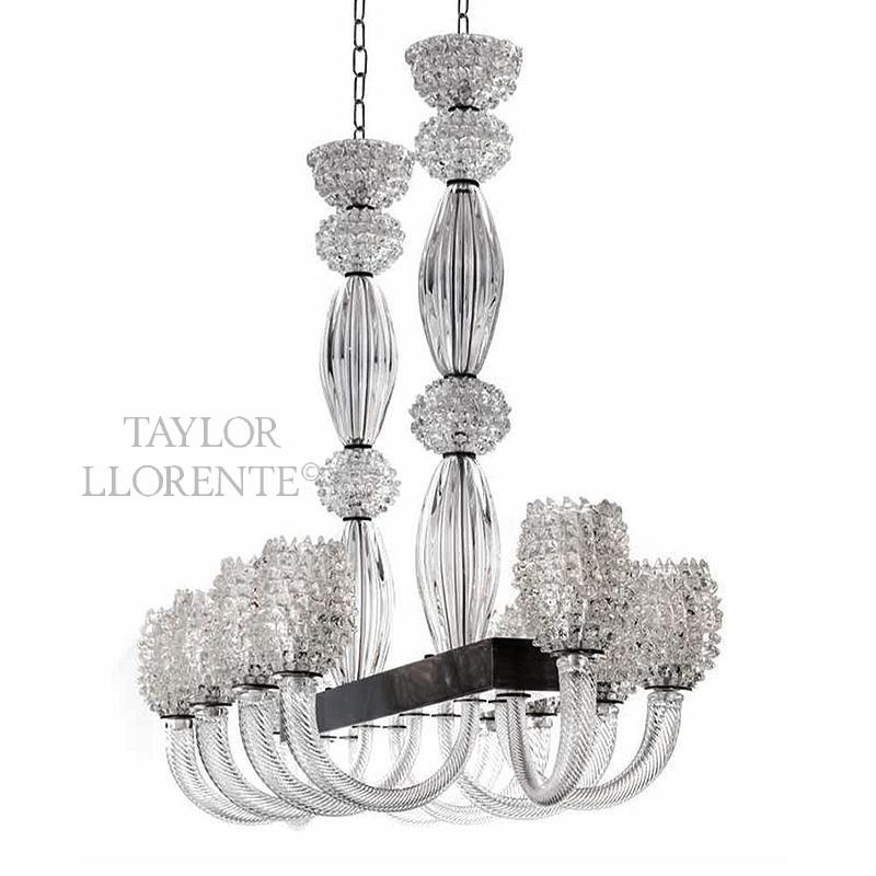 High end luxurious Italian Murano glass chandelier with 10 arms of hand blown and decorative clear glass.