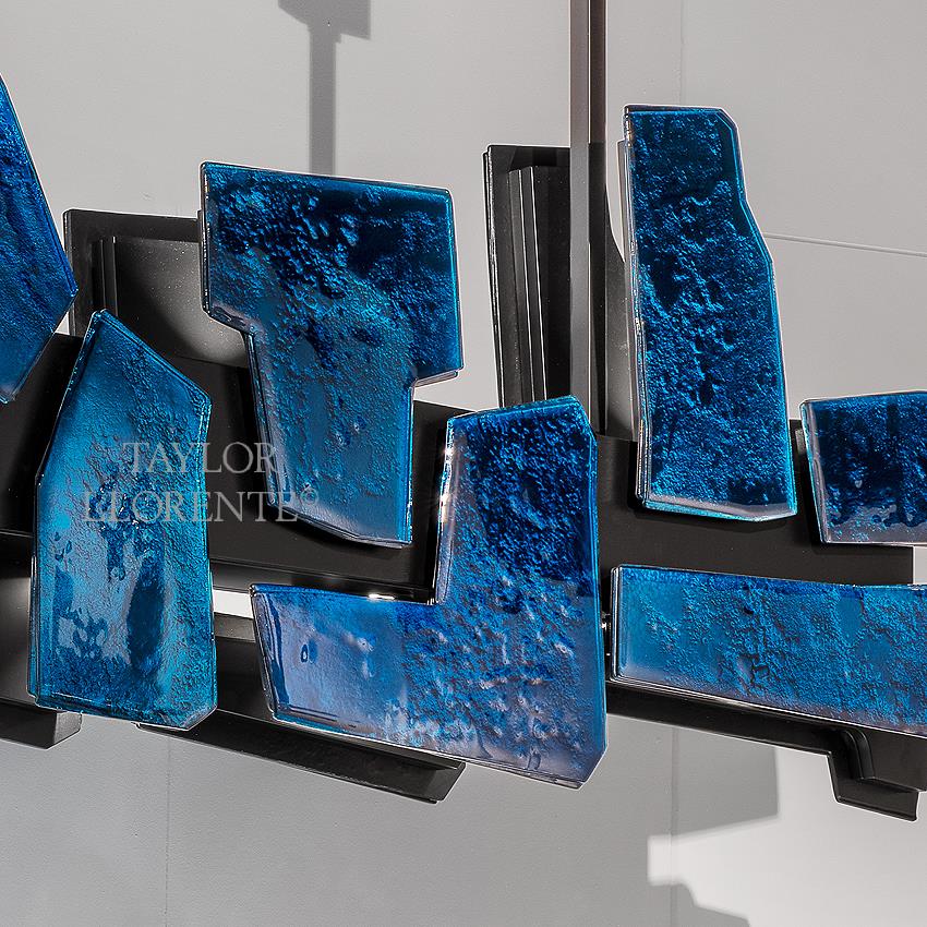 High end Italian Murano Glass Chandelier of modern architectural ethos and spectacular size. Pictured here in cobalt blue glass.
