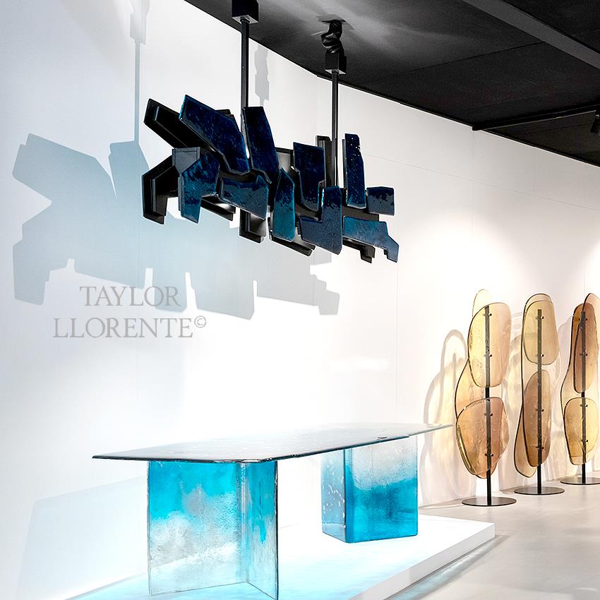 Worked in Murano glass, glass casting worked in the Murano glass furnaces and further embellished with intricate paint application techniques and fusions, creating a rare and unusual gallery piece of architectural and minimalist profile and essence.
