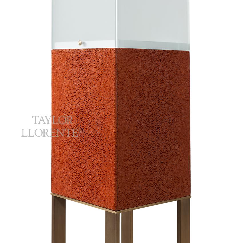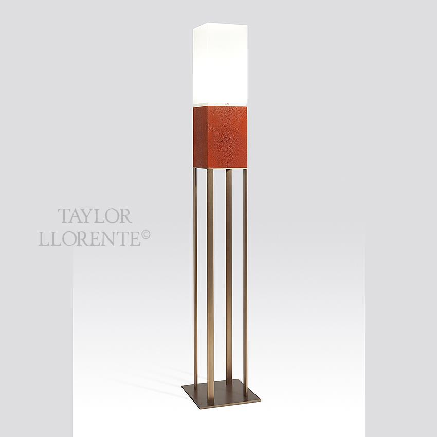 Floor lamp detailed in ‘Galuchat’ embossed leather as illustrated. Other leather options on request.