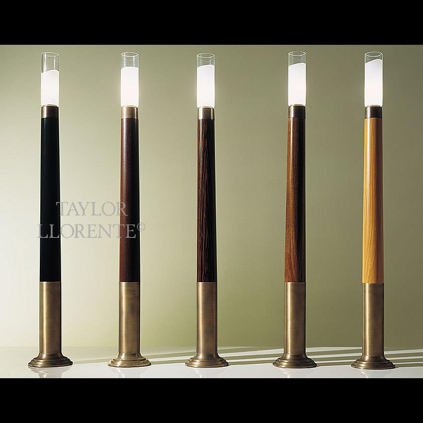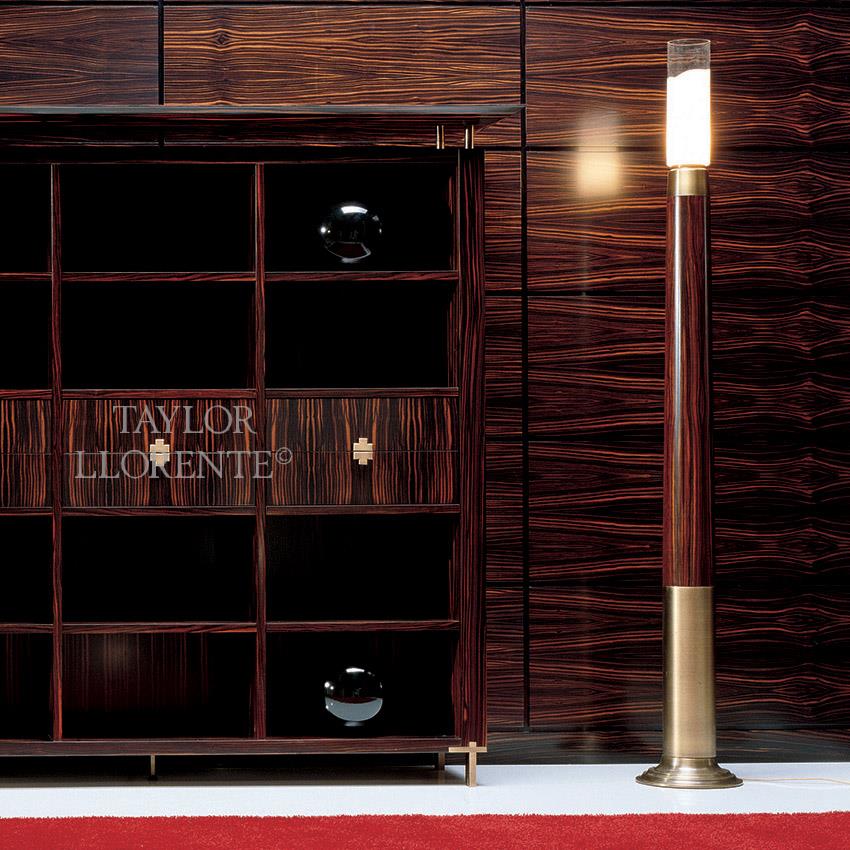 High end architectural floor lamps in macassar ebony wood with brass detailing. This lamp is also available in other woods form the collection