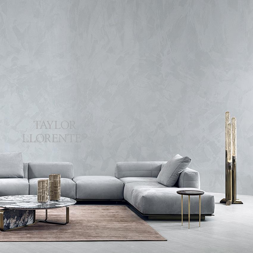 Modern and bold architectural design floor lamp with luxurious hand blown Murano glass light diffuser.