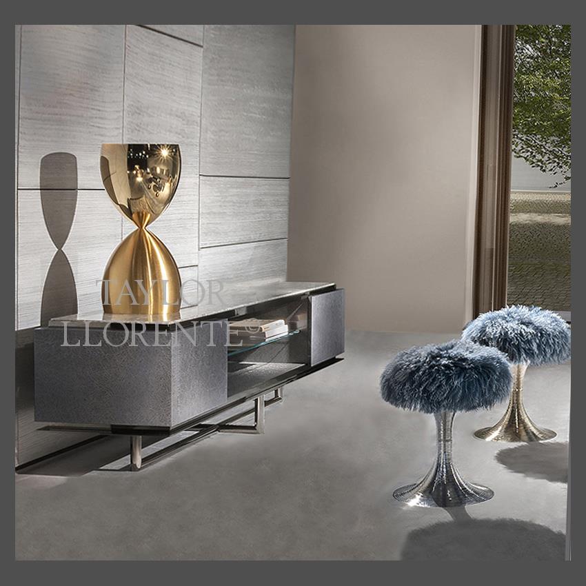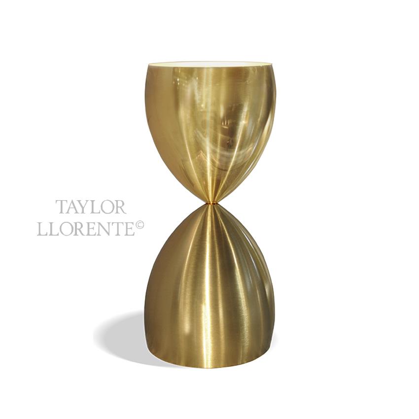 Contrasting finishes to highlight and or enhance the sculptural profile. One side in shinny gold metal and the other side in matt gold metal.