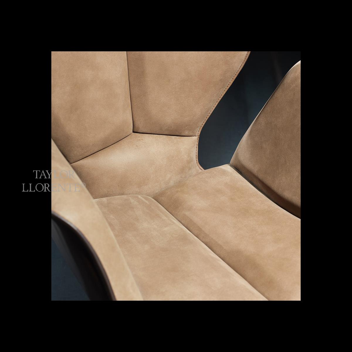 METAL PARTS Frame work of the armchair created in solid steel with metal parts finished in a range of options including black nickel, satin chrome, shiny chrome and shiny bronze. Colour chart by request.