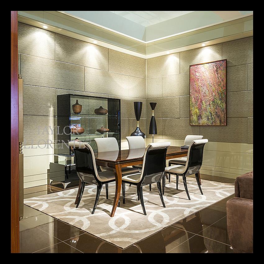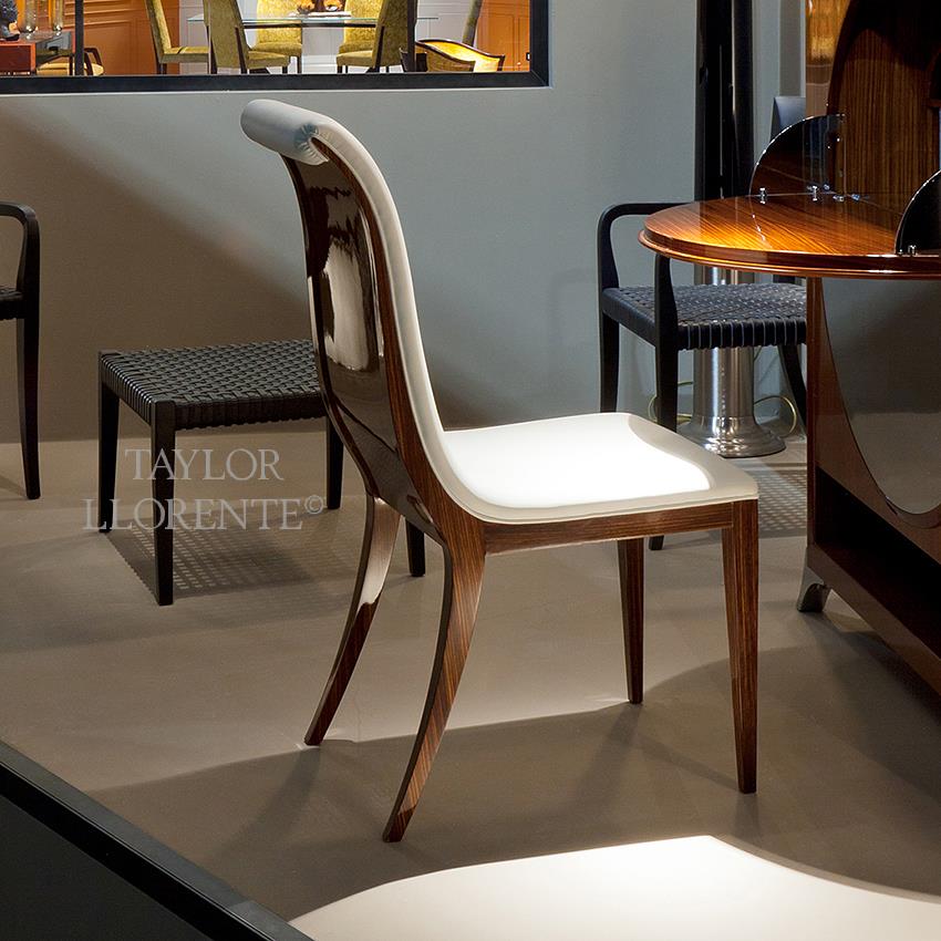Chair pictured and priced finished in high gloss. French satin finish also available at a down charge. Priced below excluding leather (COM).