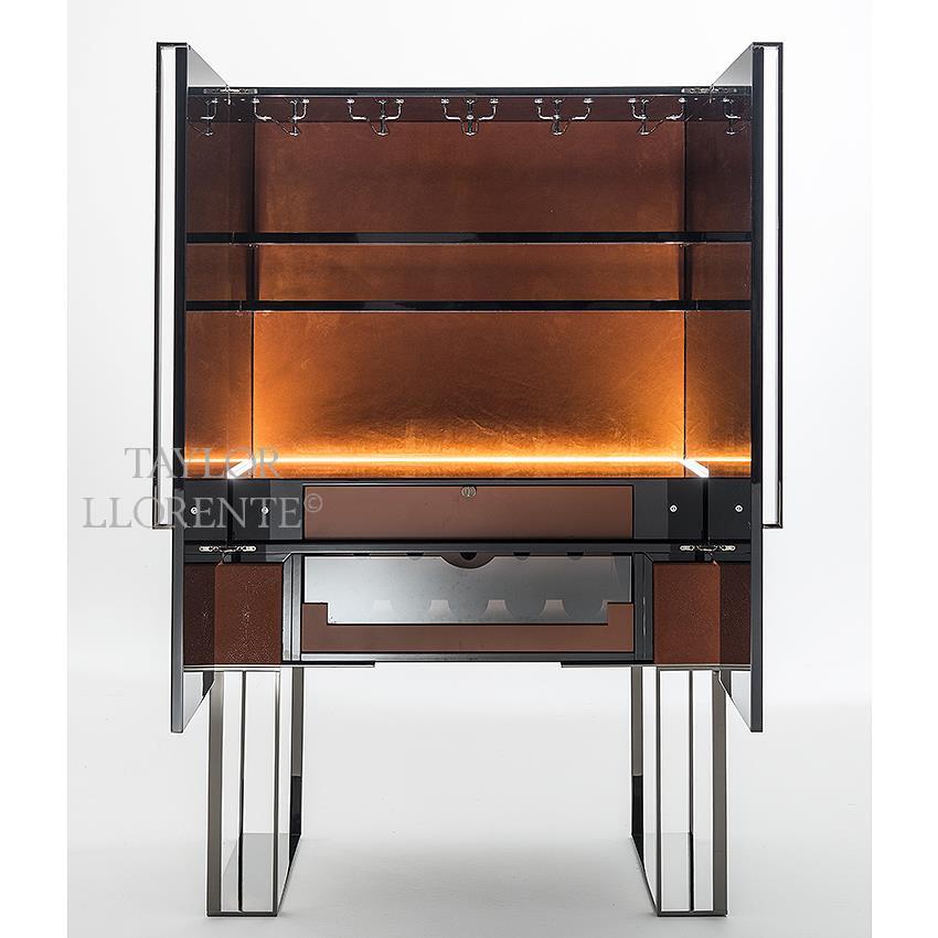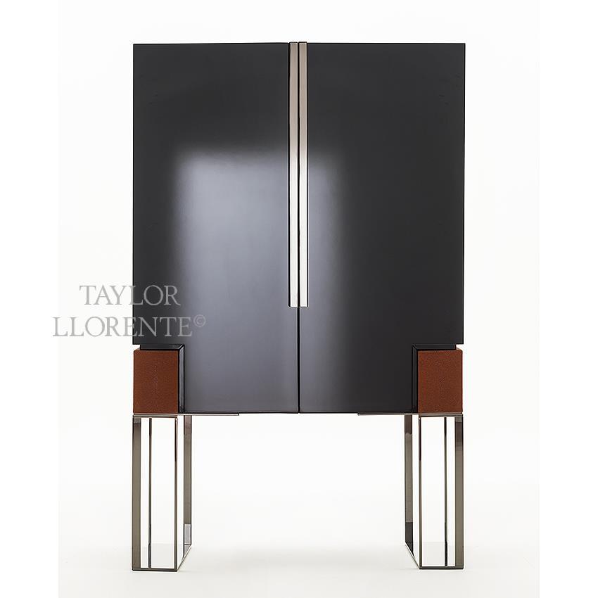 Modern Luxury bar cabinet created in black lacquer, leather & nickel. Also available in other finishes for our customers on request.