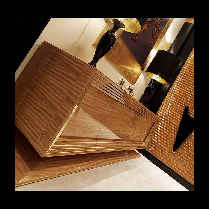 This credenza design is also available in high gloss walnut and brass decorative detailing. Other finishes from the collection available on request.