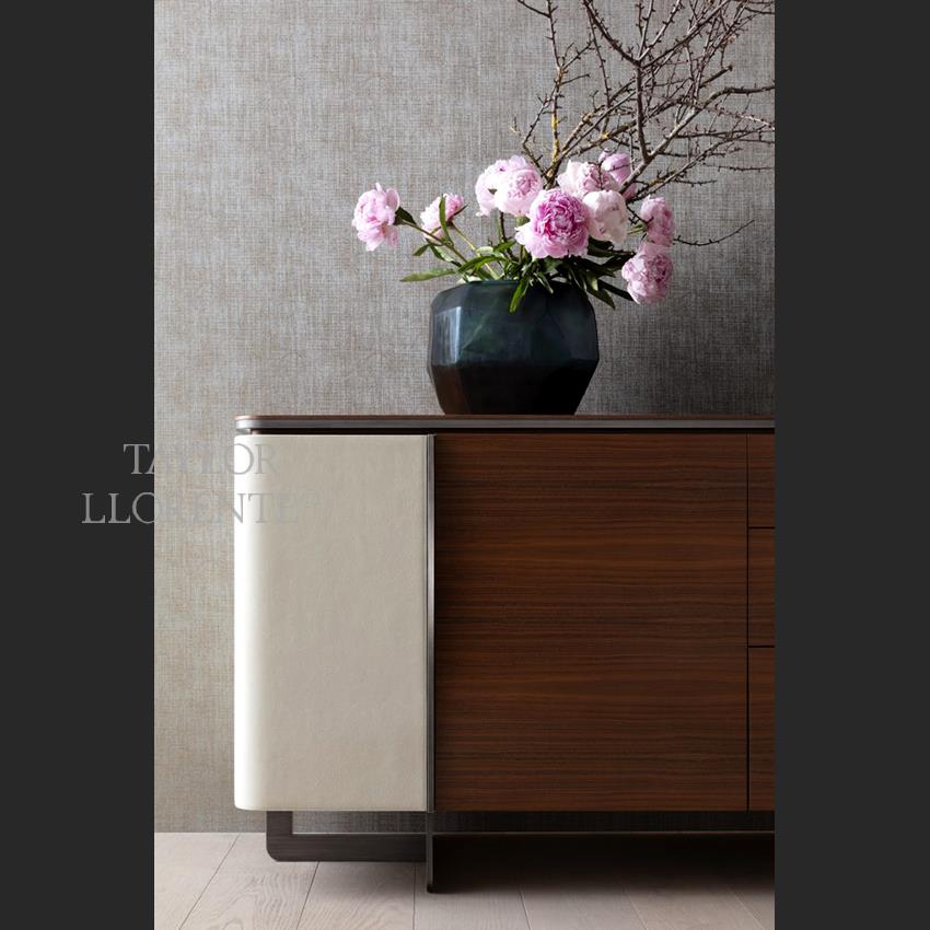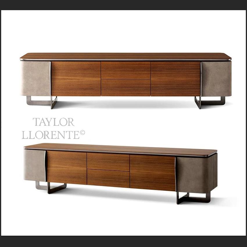 End cupboards of the sideboard upholstered in leather or nabuk leathers of the collection. End cupboards can also be specified in walnut instead of leather on request.