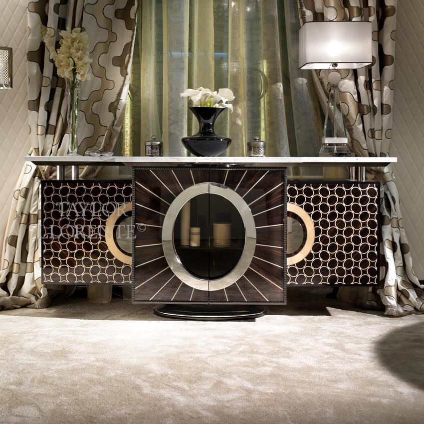 Art Deco classically referenced in terms of the use of sumptuous materials and highly skilful and traditional cabinet making skills and indeed design stylisation.