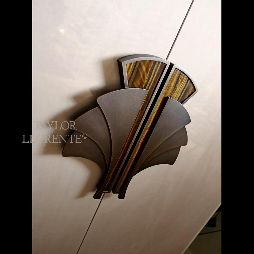 Stylised and highly decorative central handle in bronze with details in tiger eye stone handmade and finished by hand.