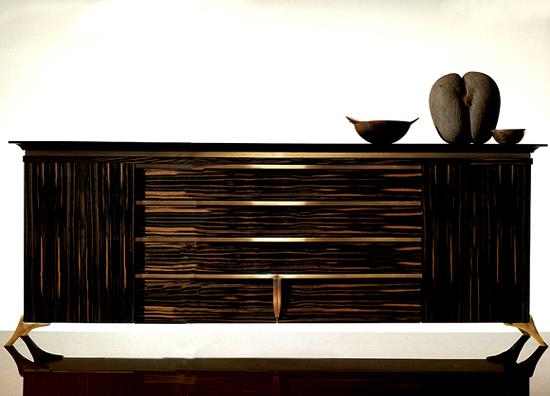 High end exclusive luxury credenza created in high specification macassar ebony wood and brass detailing.