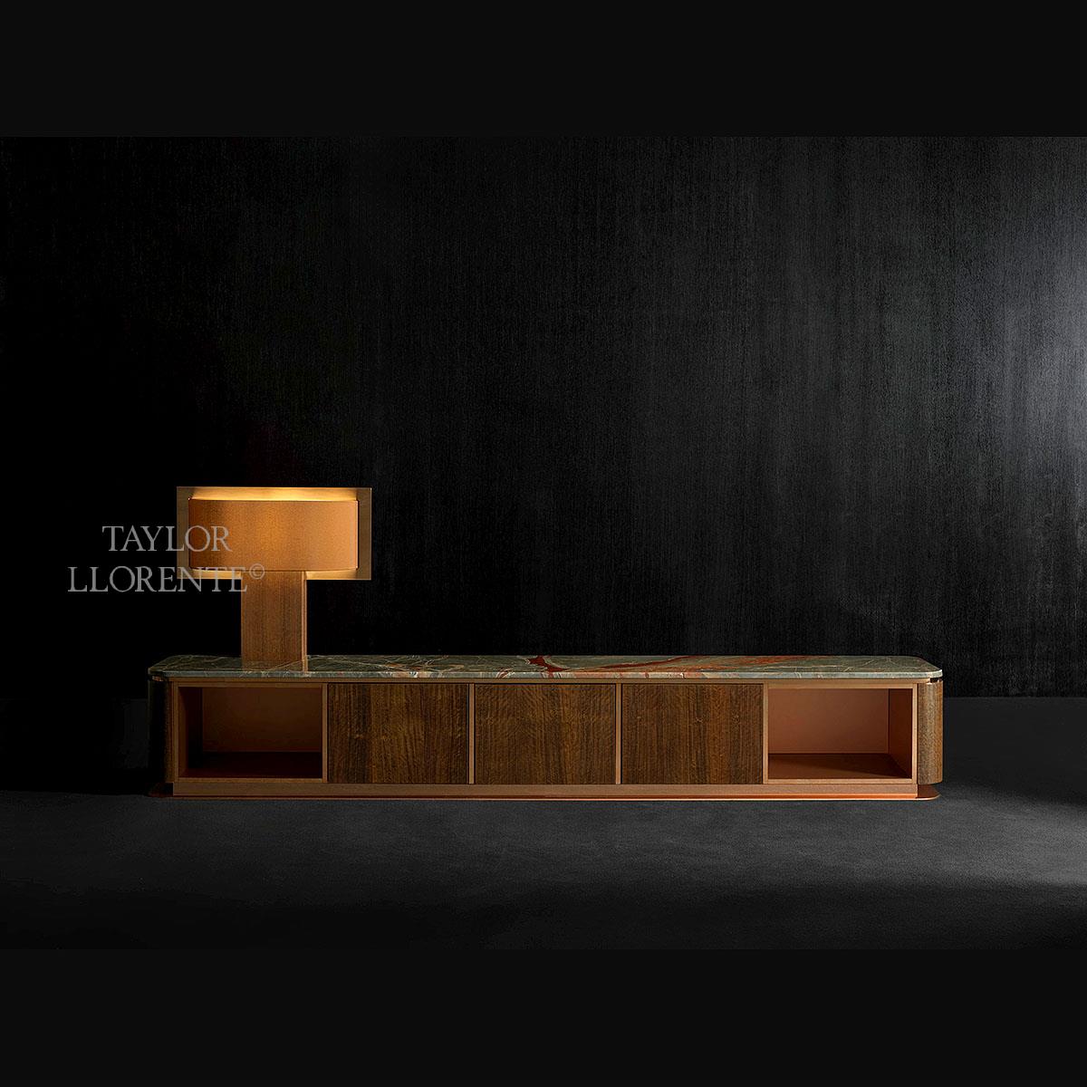 Luxurious low media sideboard characterised by clean and bold architectural lines and contrasting materials.