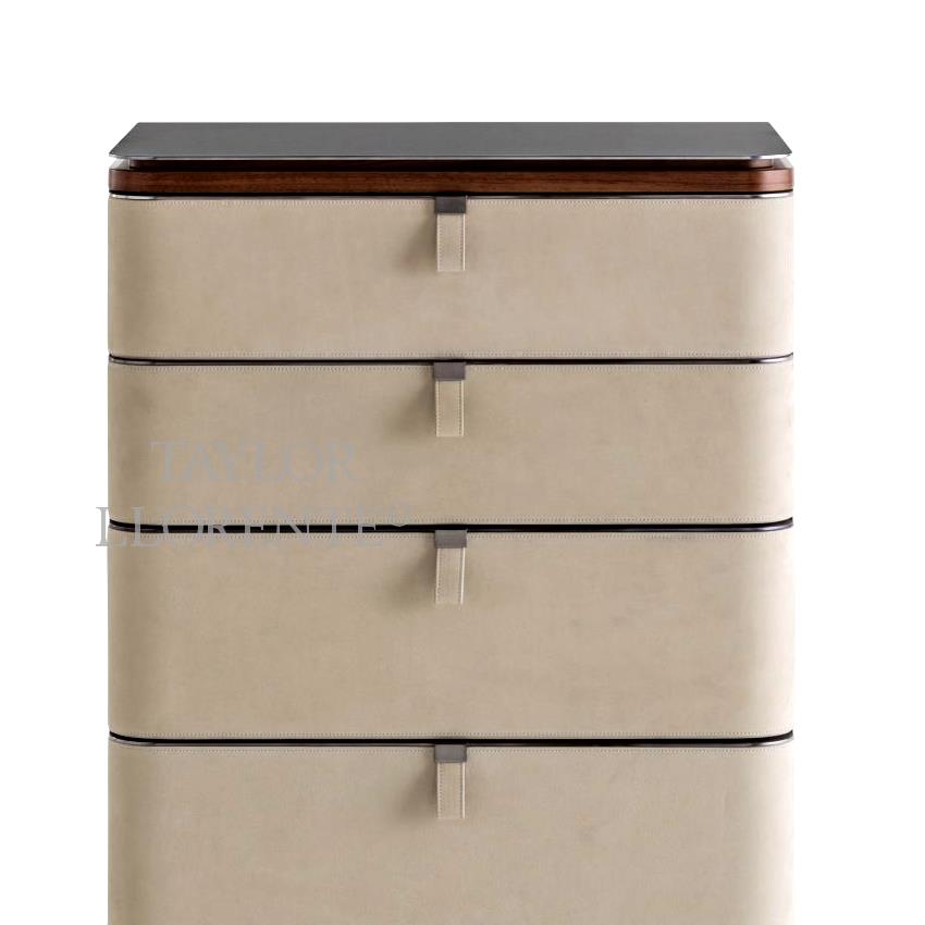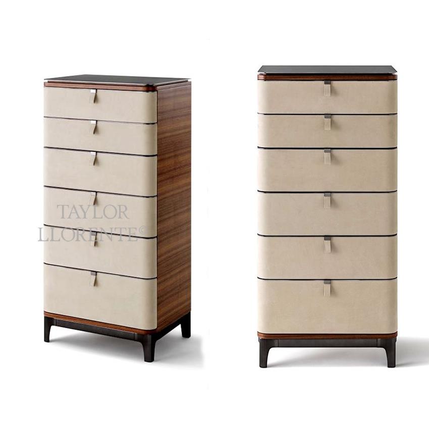 Luxury leather and Walnut Wood Drawer Set