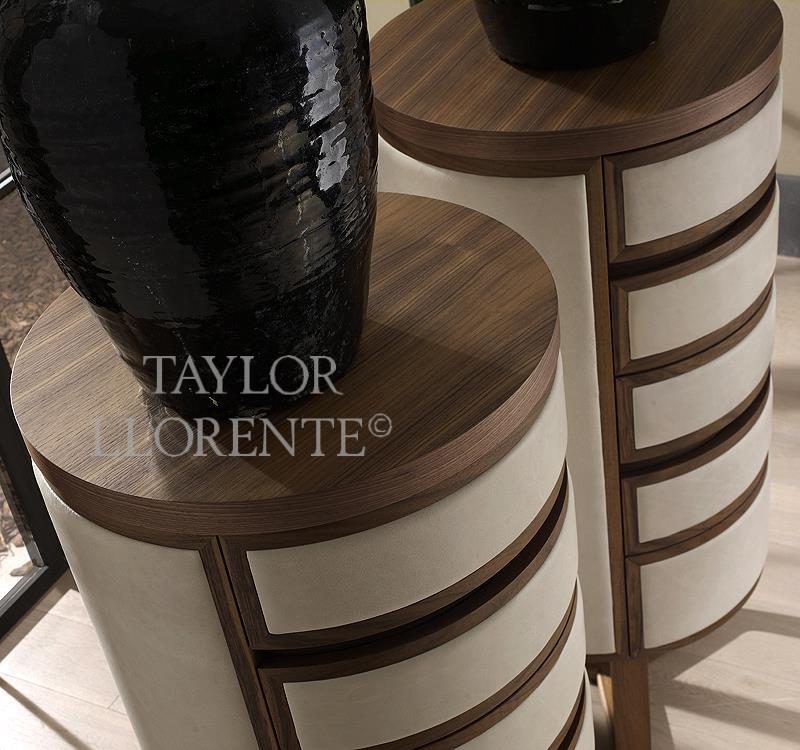 This designer circular chest of drawers is part of an exceptional collection of Italian leather furniture.