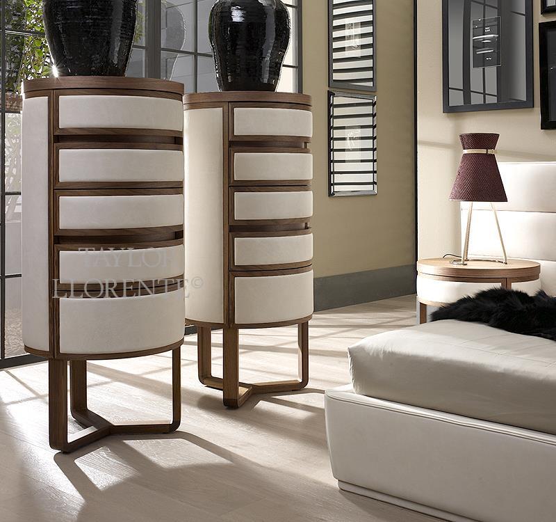 Drawers pictured here in ivory nubuck. Leather for the upholstered drawers is available from the collection in various colours and finishes.